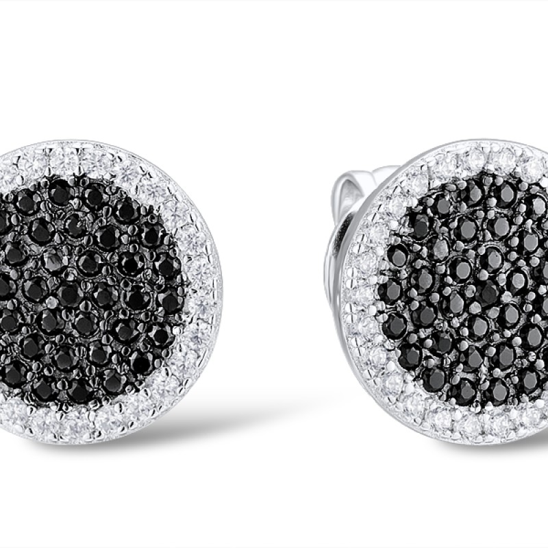 Sterling Silver w/ Black White Plating Earrings Black spinel,White Cubic Zirconia (E305279BSNZSK925)