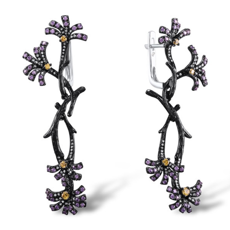 Sterling Silver Earrings Amethyst Cubic Zirconia,White Cubic Zirconia,Yellow Cubic Zirconia (E305038AWYZSL925)