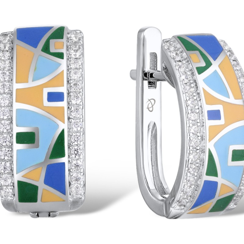 Sterling Silver Earrings White Cubic Zirconia,Enamel (E304839SENASL925)