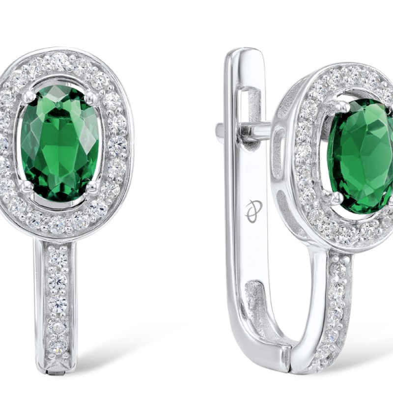Sterling Silver Earrings Green Glass,White Cubic Zirconia (E304361SGRGZSL925)