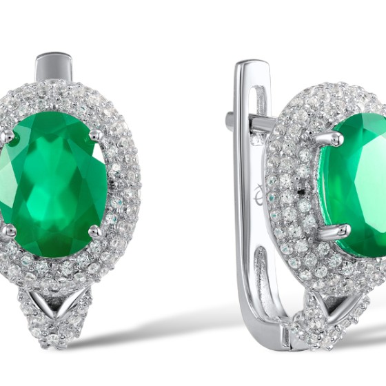 Sterling Silver Earrings Green Chalcedony,White Cubic Zirconia (E304264SGCWZSL925)