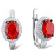 Sterling Silver w/ Black White Plating Earrings Red Glass,White Cubic Zirconia (E304261SREGZSK925)