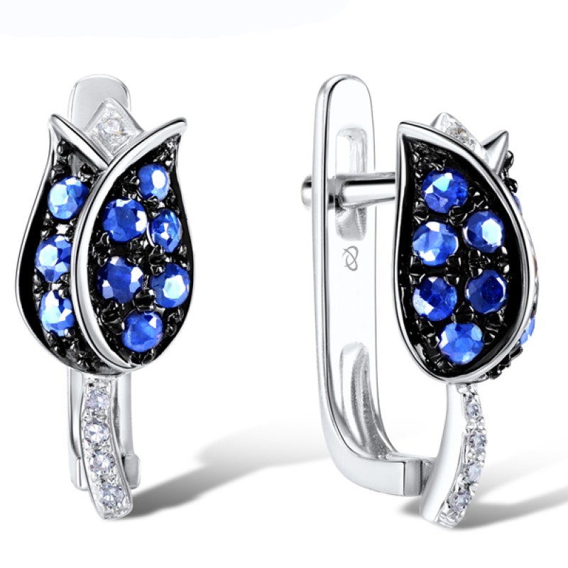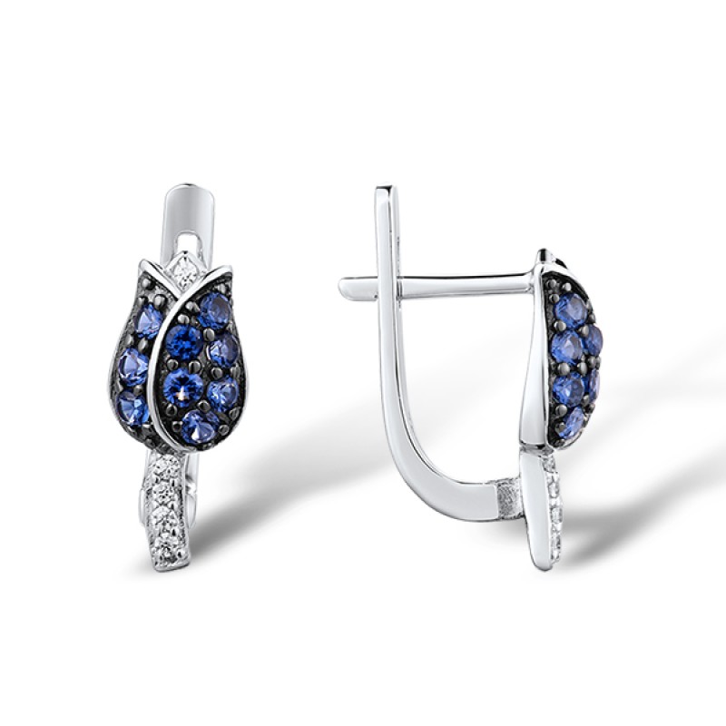 Sterling Silver w/ Black White Plating Earrings White Cubic Zirconia,Blue Nano Cubic Zirconia (E304248SBZZSK925)