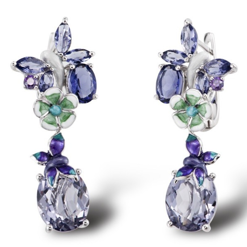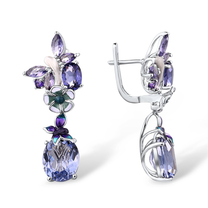 Sterling Silver Earrings Purple Glass,Amethyst Cubic Zirconia,Enamel (E304201ENASL925)
