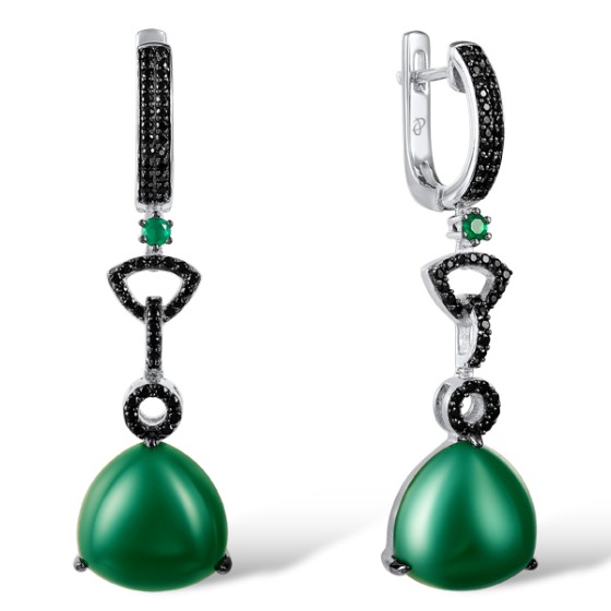 Sterling Silver w/ Black White Plating Earrings Dyed Green Agate,Green Glass,Black spinel (E304191SBSGGSK925)