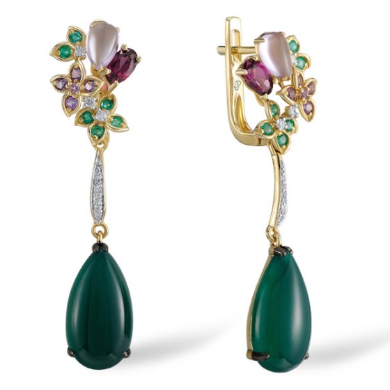 Sterling Silver w/ Yellow Plating Earrings Amethyst,Dyed Green Agate,Green Spinel,Rhodolite Garnet,White Cubic Zirconia (E303881MULSY925)