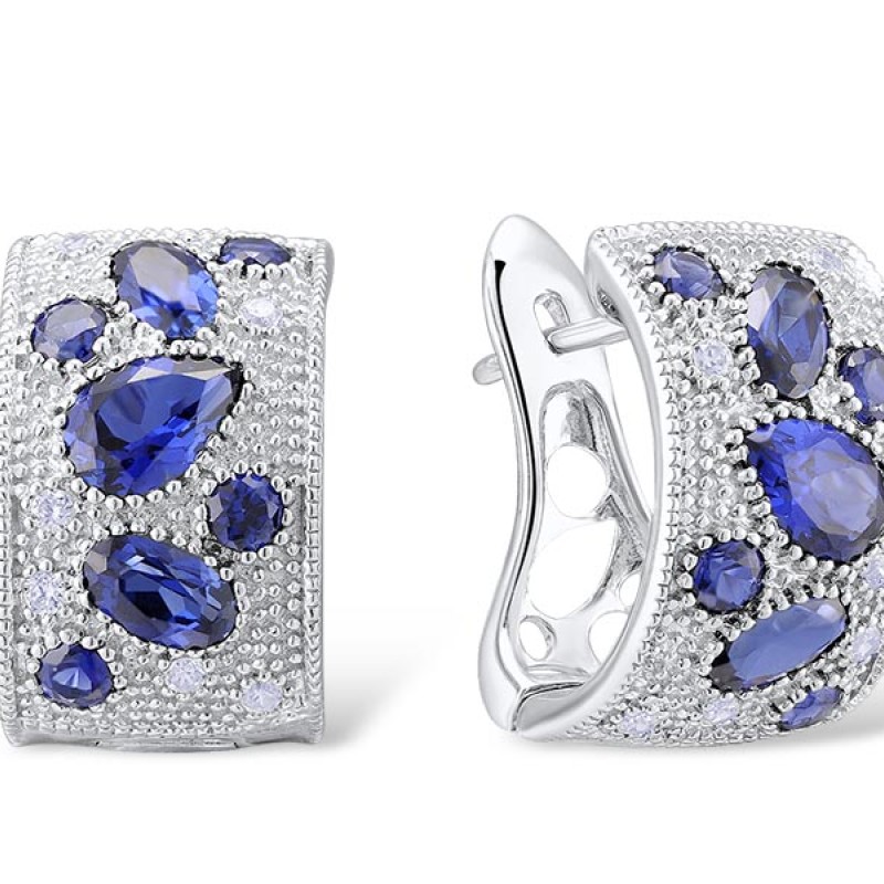 Sterling Silver Earrings Blue Glass,Blue Nano Cubic Zirconia,White Cubic Zirconia (E303782CRSZSL925)
