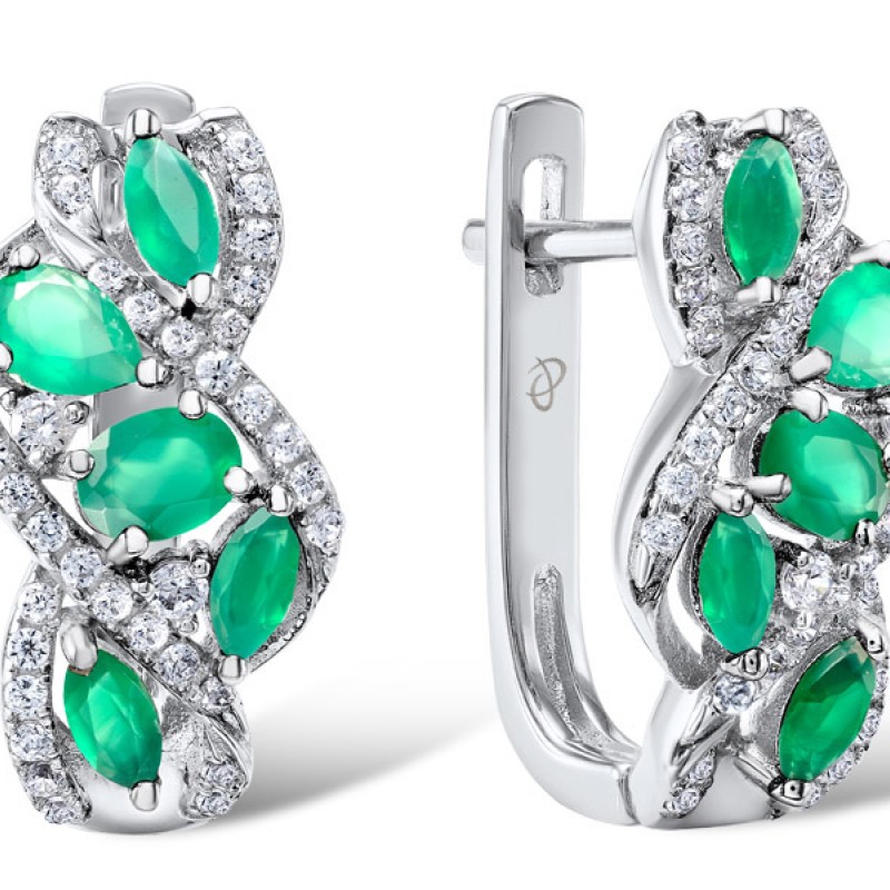 Sterling Silver Earrings Green Chalcedony,White Cubic Zirconia (E303735SGCWZSL925)