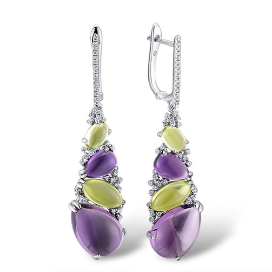 Sterling Silver Earrings Amethyst,Peridot,White Cubic Zirconia (E303719AAMPZSL925)