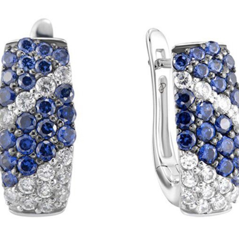 Sterling Silver w/ Black White Plating Earrings Blue Nano Cubic Zirconia,White Cubic Zirconia (E303579BZZSK925)