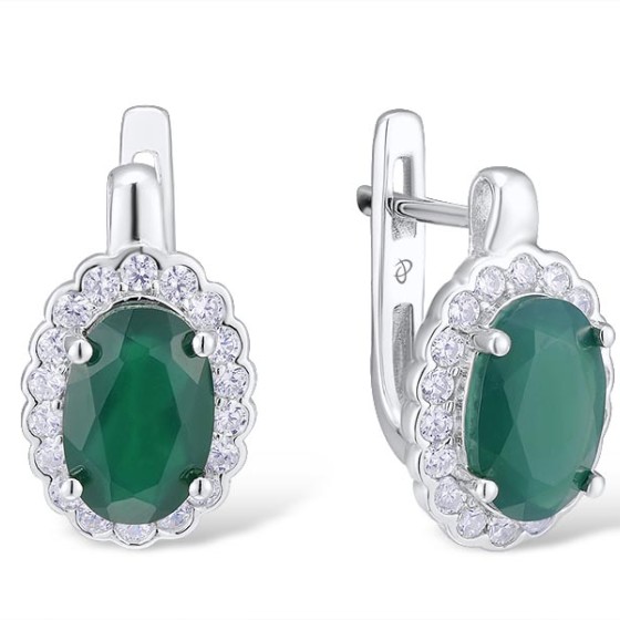 Sterling Silver Earrings White Cubic Zirconia,Dyed Green Agate (E303546GEZSL925)