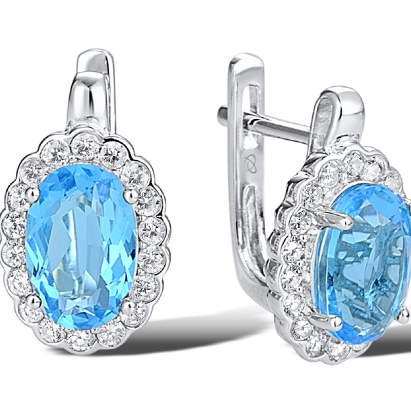 Sterling Silver Earrings Blue Glass,White Cubic Zirconia (E303546BLGZ1SL925)