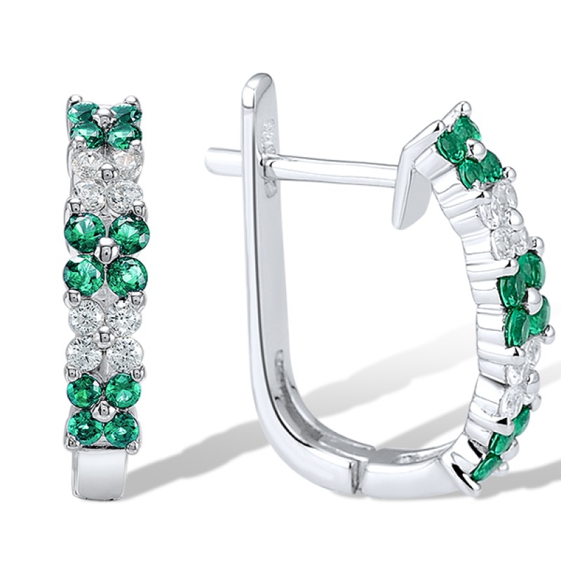 Sterling Silver Earrings Green Spinel,White Cubic Zirconia (E303544GSZSL925)