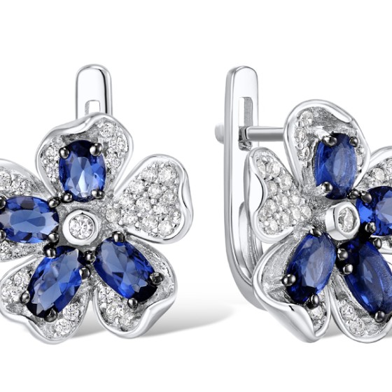 Sterling Silver w/ Black White Plating Earrings White Cubic Zirconia,Blue Glass (E303513BLGZSK925)