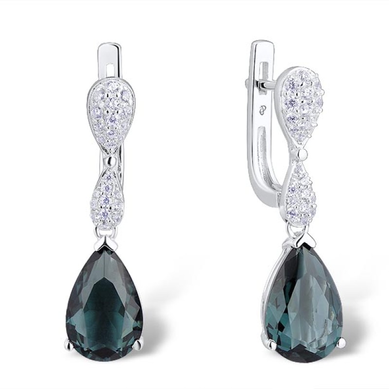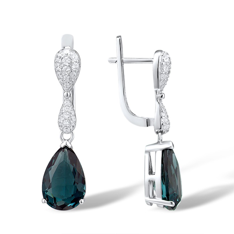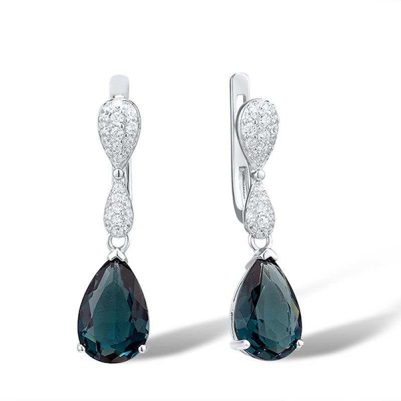 Sterling Silver Earrings White Cubic Zirconia,Blue Glass (E303468BLGZ1SL925)