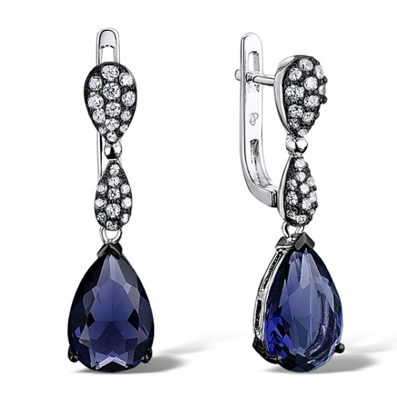 Sterling Silver w/ Black White Plating Earrings Blue Glass,White Cubic Zirconia (E303468BLGZ2SK925)