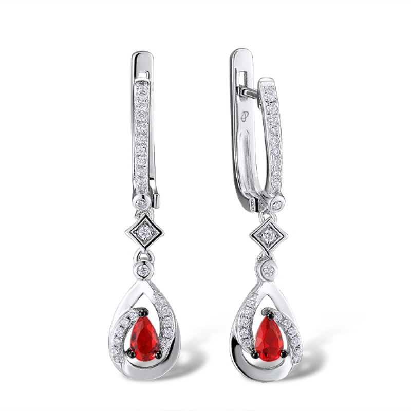 Sterling Silver w/ Black White Plating Earrings Red Glass,White Cubic Zirconia (E303245SREGZSK925)