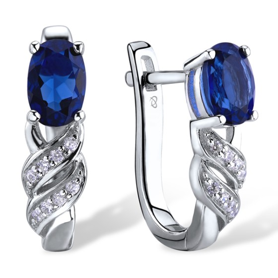 Sterling Silver Earrings Blue Glass,White Cubic Zirconia (E303165BLGZSL925)