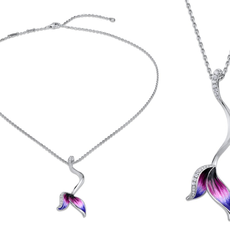 Sterling Silver Necklace Enamel,White Cubic Zirconia (N312189ENASL925)