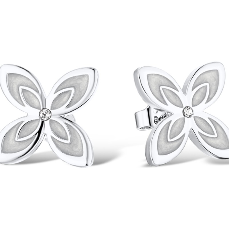 Brass w/ White Gold Plating Earrings Enamel,Swarovski 001 (E311251ENA8BRW)