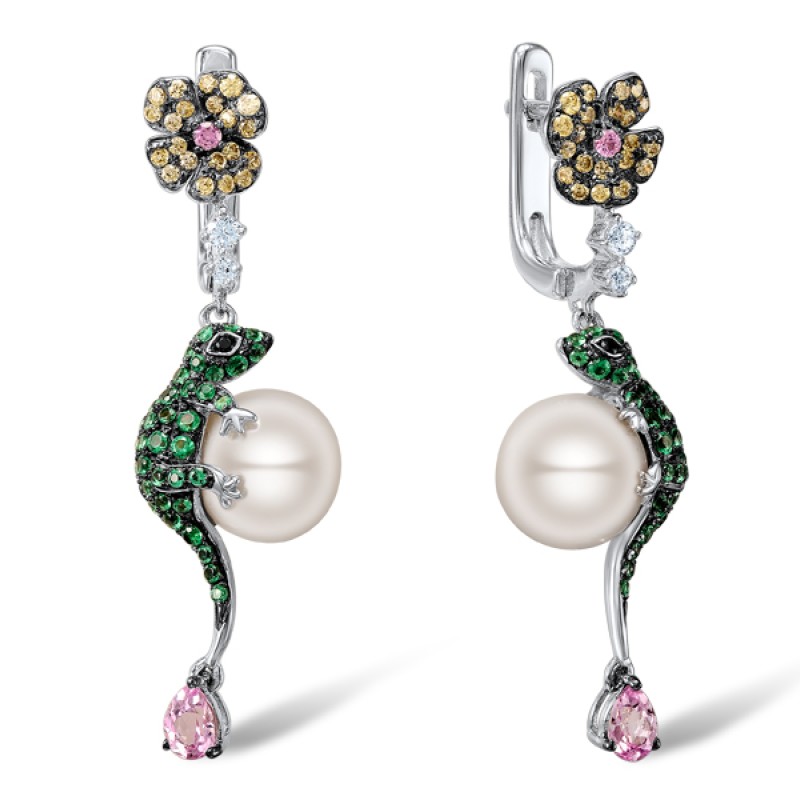 Sterling Silver w/ Black White Plating Earrings Green Spinel,Black spinel,White Cubic Zirconia,Created Pink Sapphire,Yellow Nano Cubic Zirconia (Ci,Fresh Water White Pearl (E305158SMULSK925)