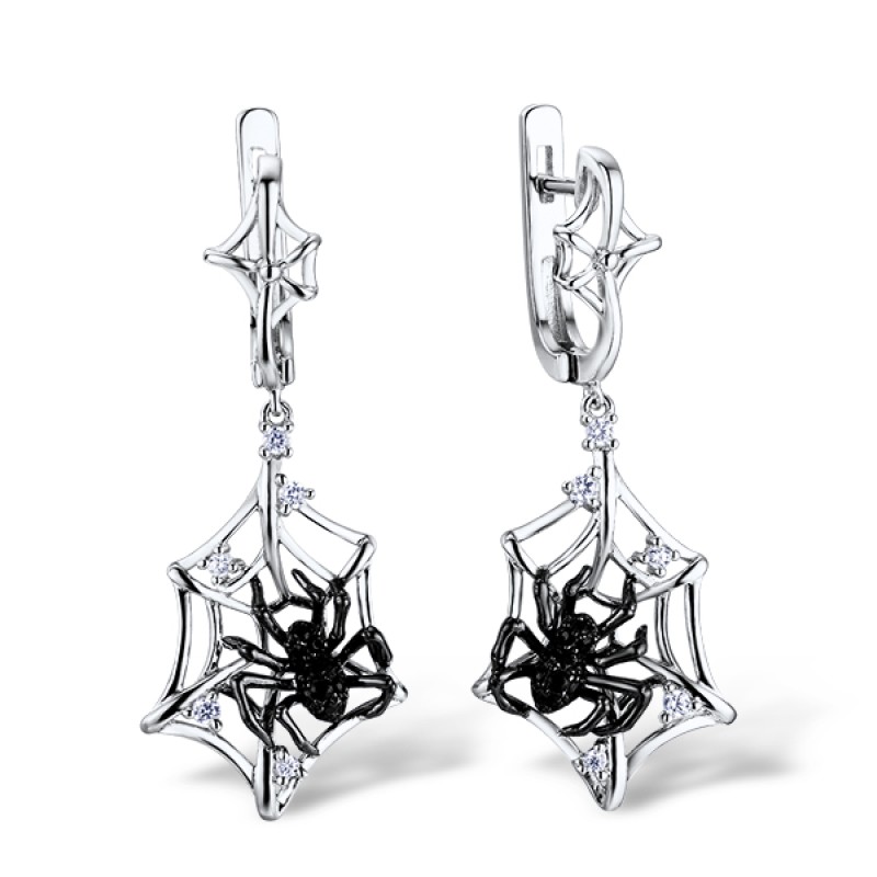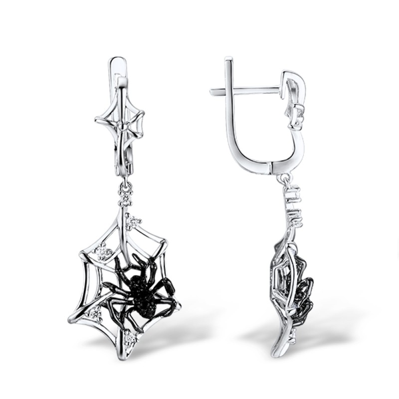 Sterling Silver w/ Black White Plating Earrings White Cubic Zirconia,Black spinel (E309262BSNZSK925)