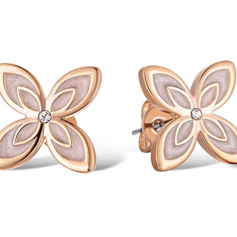 Brass w/ Rose Gold Plating Earrings Enamel,Swarovski 001 (E311251ENA4BRR)