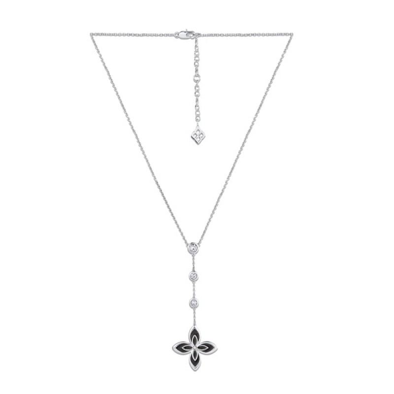 Brass w/ White Gold Plating Necklace Enamel,Swarovski 001 (N311251EABRW)