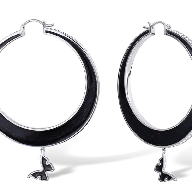 Brass w/ White Gold Plating Earrings Enamel,Swarovski 001 (E311247ENABRW)