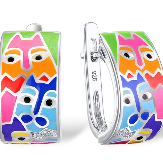 Sterling Silver Earrings Enamel,White Cubic Zirconia (E310299ENASL925)