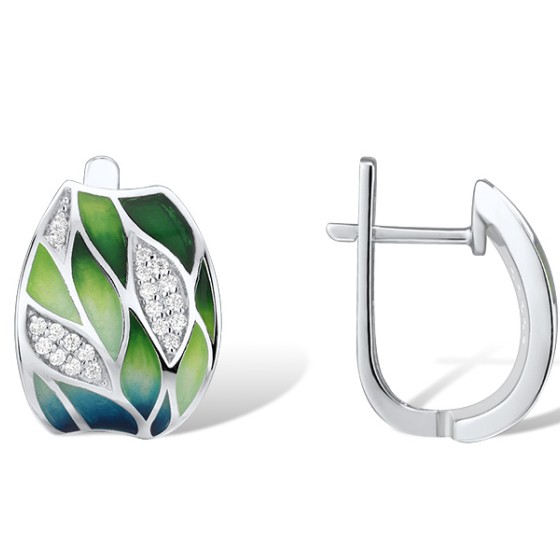 Sterling Silver Earrings White Cubic Zirconia,Enamel (E303522ENA2SL925)
