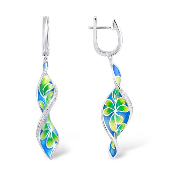 Sterling Silver Earrings Enamel,White Cubic Zirconia (E308955ENASL925)
