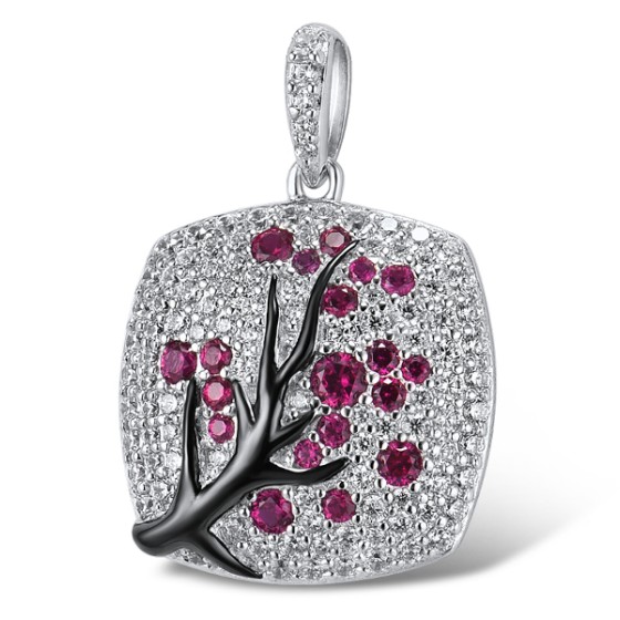Sterling Silver w/ Black White Plating Pendant White Cubic Zirconia,Created Ruby (P305333CRZSK925)