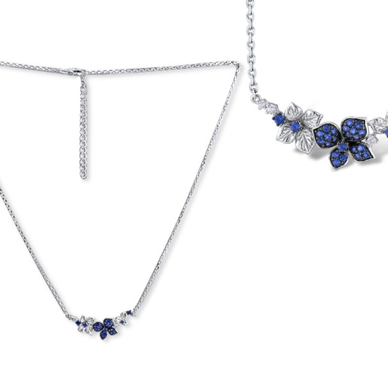 Sterling Silver w/ Black White Plating Necklace White Cubic Zirconia,Blue Nano Cubic Zirconia (N304737SBZZSK925)