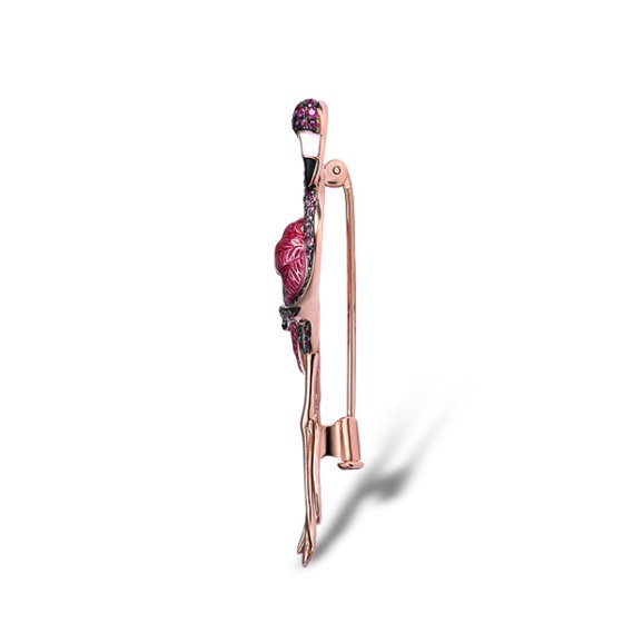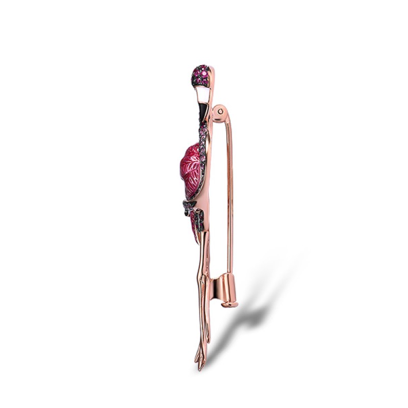 Sterling Silver w/ Rose Black White Plating Brooch Created Ruby,Enamel,Black spinel,Created Pink Sapphire (O314048ENASV925)