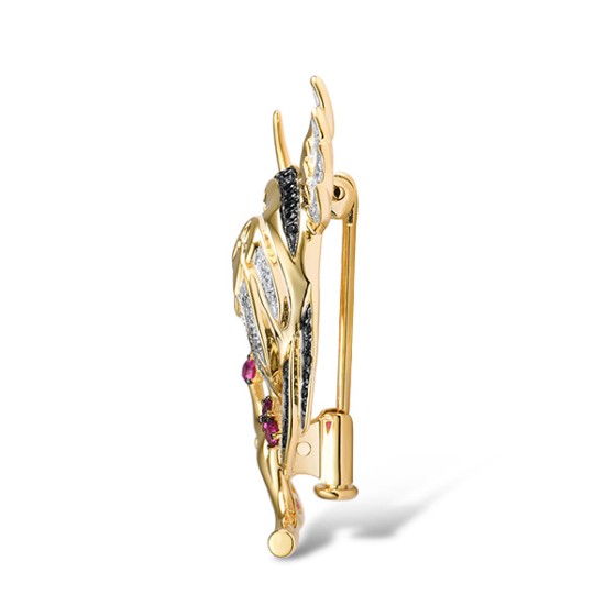 Sterling Silver w/ Yellow Black White Plating Brooch White Cubic Zirconia,Black spinel,Created Ruby (O313902BCRZSZ925)