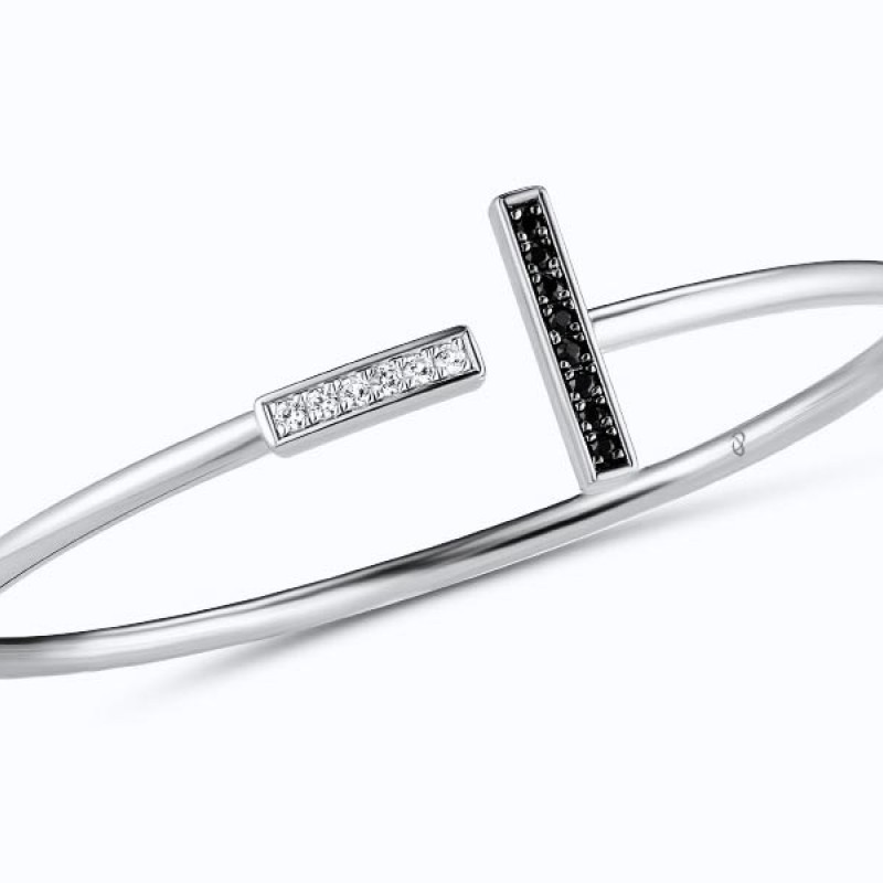 Sterling Silver w/ Black White Plating Bangle White Sapphire,Black Sapphire (G310569SBSWSK925)