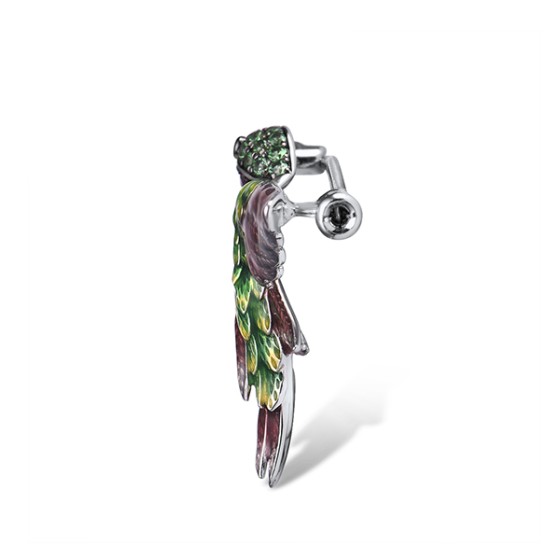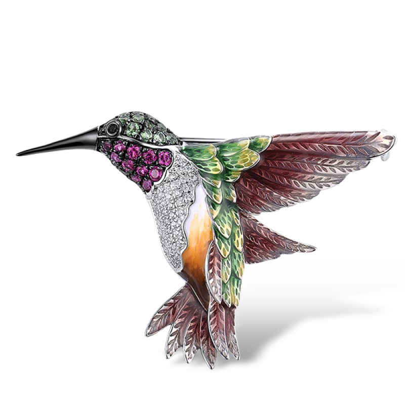 Sterling Silver w/ Black White Plating Brooch Green Spinel,Black spinel,White Cubic Zirconia,Created Ruby,Enamel (O314039ENA1SK925)