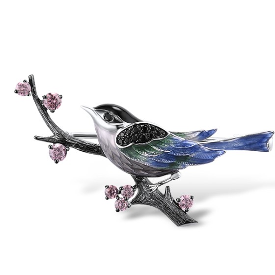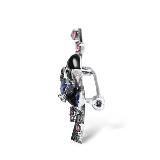 Sterling Silver w/ Black White Plating Brooch Black spinel,Enamel,Rhodolite Garnet Cubic Zirconi (O314033ENA1SK925)