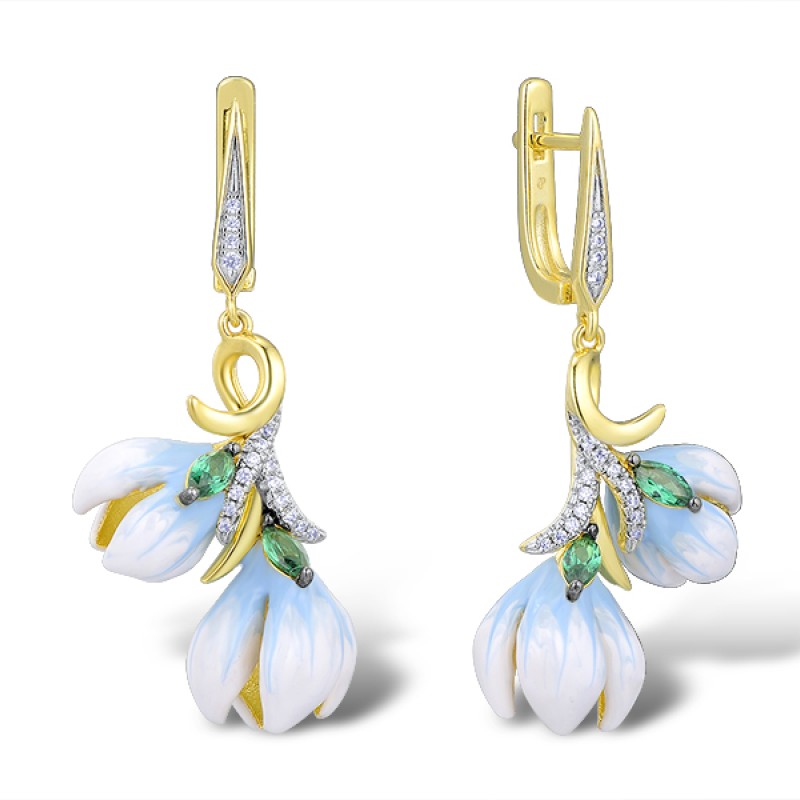 Sterling Silver w/ Yellow Black White Plating Earrings White Cubic Zirconia,Enamel,Green Spinel (E313943ENASZ925)