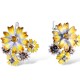 Sterling Silver w/ Black White Plating Earrings Enamel,Yellow Nano Cubic Zirconia (Ci,Black spinel,Chocolate CZ (E313416ENASK925)