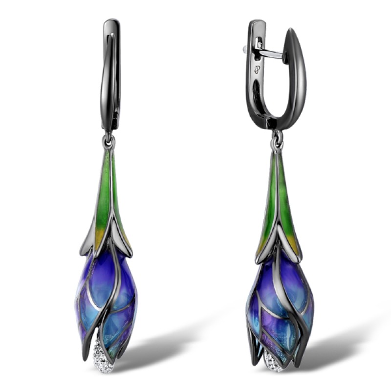 Sterling Silver w/ Black White Plating Earrings White Cubic Zirconia,Enamel (E309164ENASK925)
