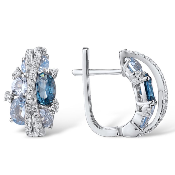 Sterling Silver Earrings Blue Spinel,White Cubic Zirconia (E306872BLZSL925)