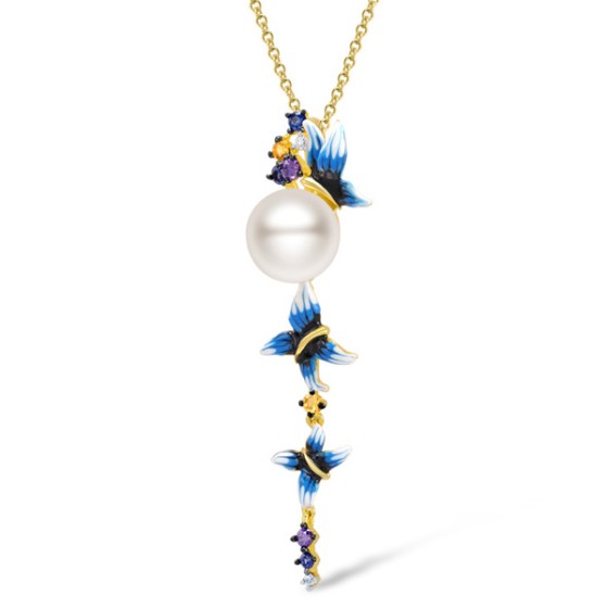 Sterling Silver w/ Yellow Plating Pendant Yellow Nano Cubic Zirconia (Ci,Enamel,Fresh Water White Pearl,Amethyst Cubic Zirconia,White Cubic Zirconia,Blue Nano Cubic Zirconia (P306720ENASY925)