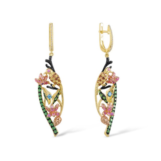 Sterling Silver w/ Yellow Plating Earrings Chocolate CZ,Created Pink Sapphire,Green Spinel,Blue Cubic Zirconia,White Cubic Zirconia (E305297MULSY925)