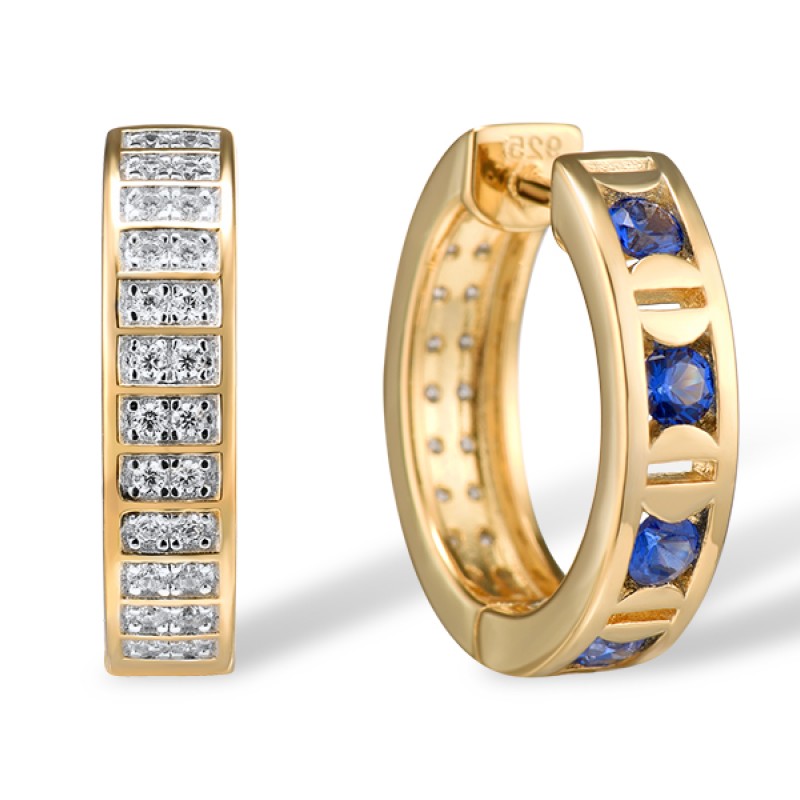 Sterling Silver w/ IONIC YELLOW PLATING Earrings Blue Nano Cubic Zirconia,White Cubic Zirconia (E315094SBZZSP925)