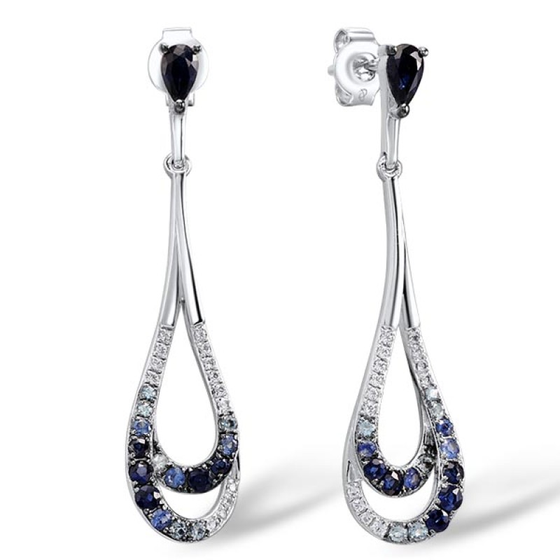Sterling Silver Earrings Blue Sapphire,Blue Topaz (Swiss Blue),White Sapphire (E307424SBSWSSL925)