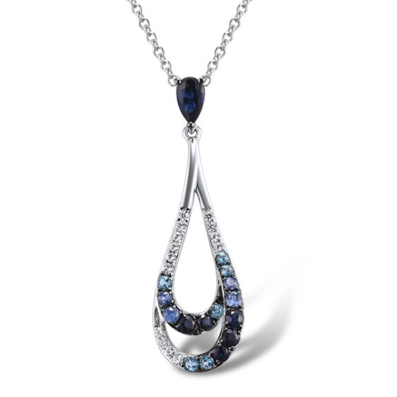 Sterling Silver Pendant Blue Sapphire,Blue Topaz (Swiss Blue),White Sapphire (P307424SBSWSSL925)