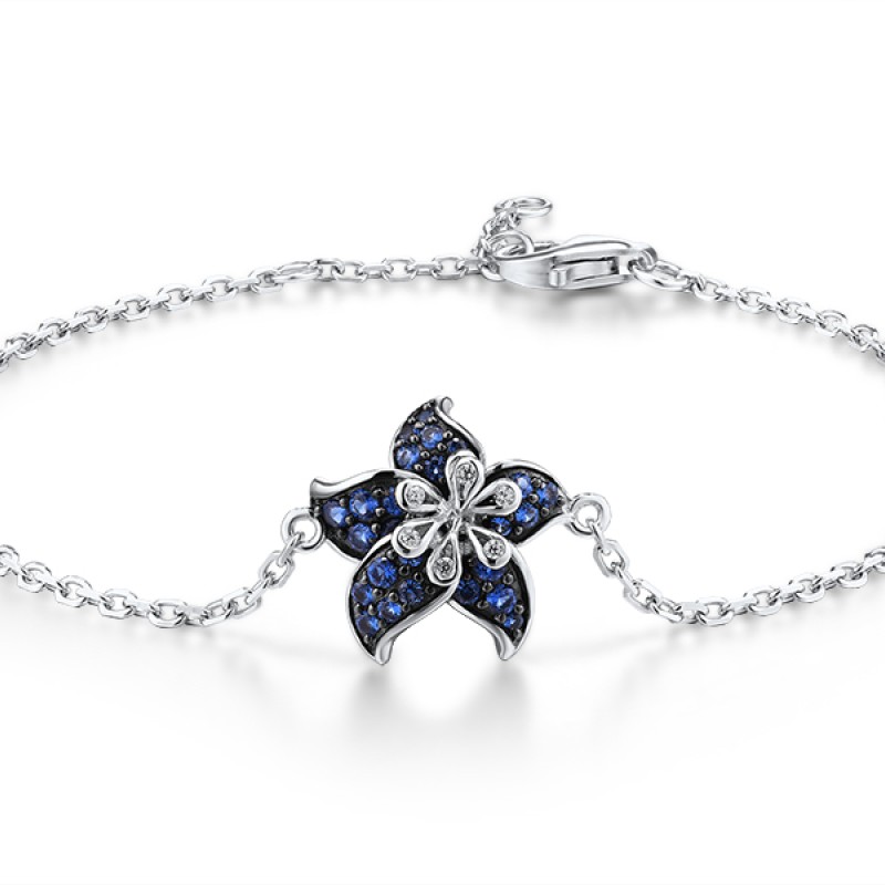 Sterling Silver w/ Black White Plating Bracelet Blue Nano Cubic Zirconia,White Cubic Zirconia (B306666BZZSK925)