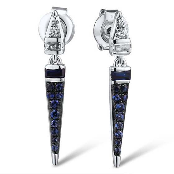 Sterling Silver w/ Black White Plating Earrings Created Sapphire,Created white sapphire (E310548CSWSK925)